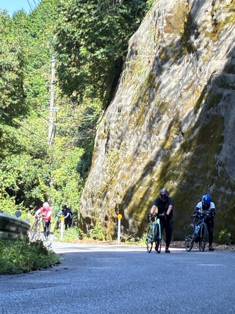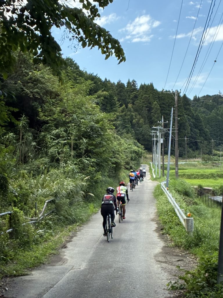 昼食後、ブルーベリーヒルズの登りを頑張り、粟又の滝前、養老渓谷のアップダウンエリアを走る夕方に向かう走行。