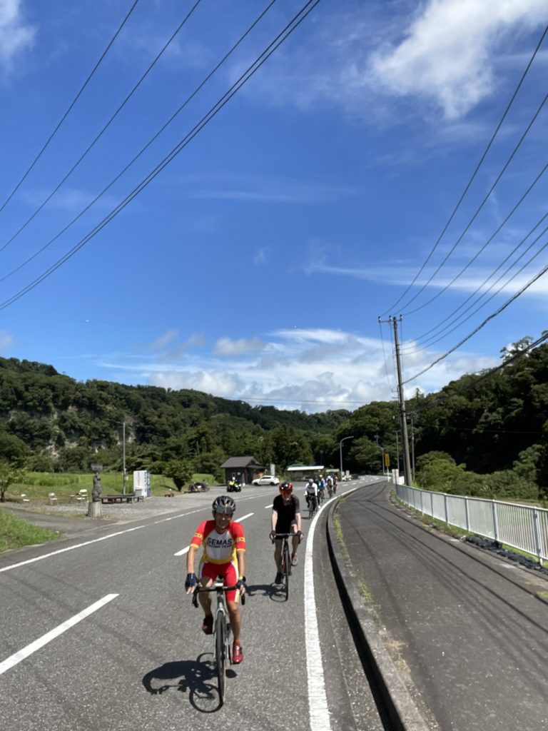 すでに暑さを感じる気温と湿度、長柄の大仏通りからリソルの森を抜け、白子町役場前のセブンイレブンで休憩。流石に数名の参加者はサポート車乗車。